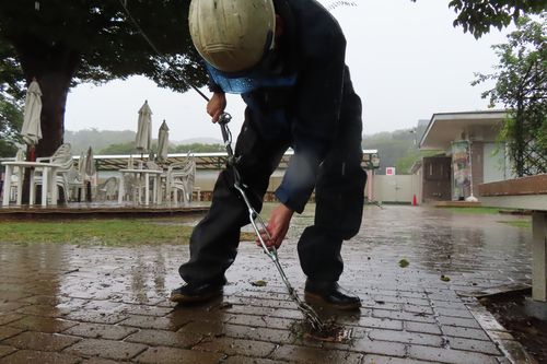 園内では台風の接近に伴い、園内では暴風・水害対策を行っております!