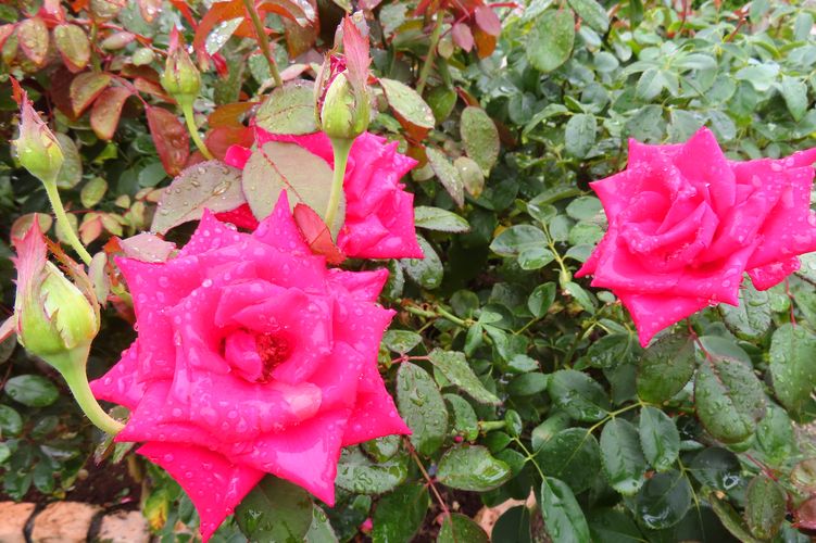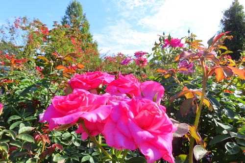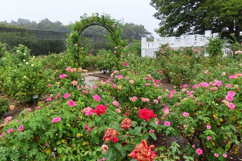 フラワーステージとレストラン周りには元気に咲いているバラが見られます。