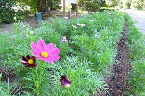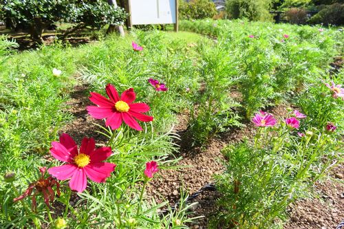 一重咲きや八重咲き、黄色のコスモスなど様々な品種がありますが、あしかがフラワーパークでは一番ベーシックな子を植栽しています。