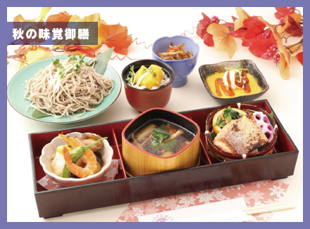 栃木県の食材を使用した「秋の味覚御膳」や旬のフルーツを使用したアフタヌーンティーセットがお勧めです。園内の景色を眺めながらおくつろぎください。