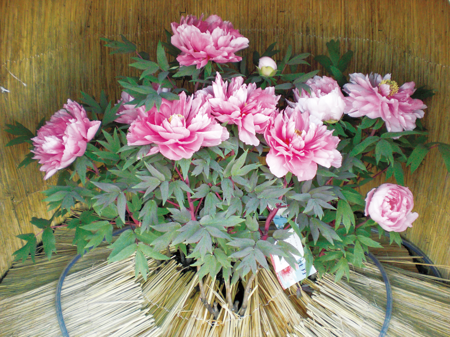 早春のやさしい光に包まれる園内では200ヶ所に雪囲いが登場します。中には冬咲きボタンを中心に早春の花々の寄せ植えなどがご覧いただけます。