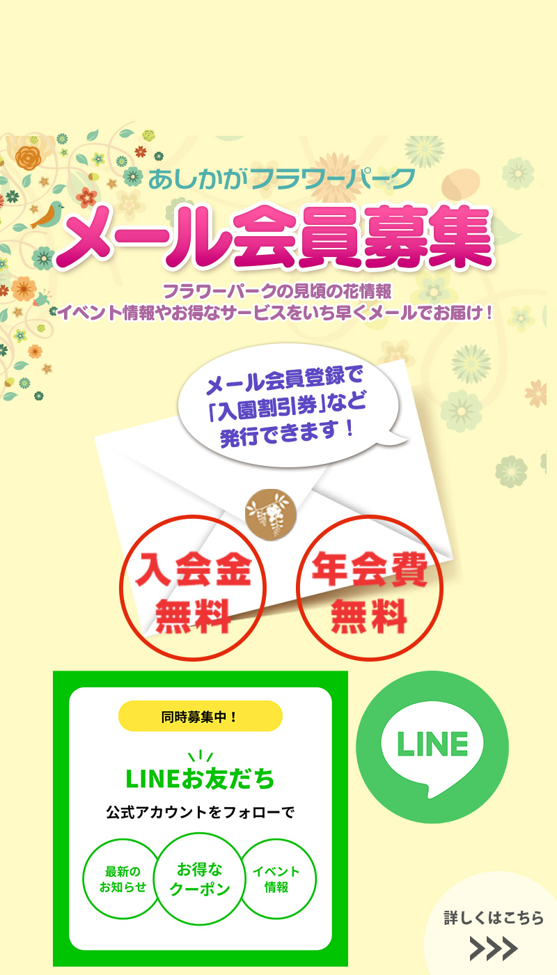 【入園料無料】メール会員に登録で割引券プレゼント!
