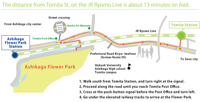 Please use the JR Ryomo Line "Ashikaga Flower Park" station.