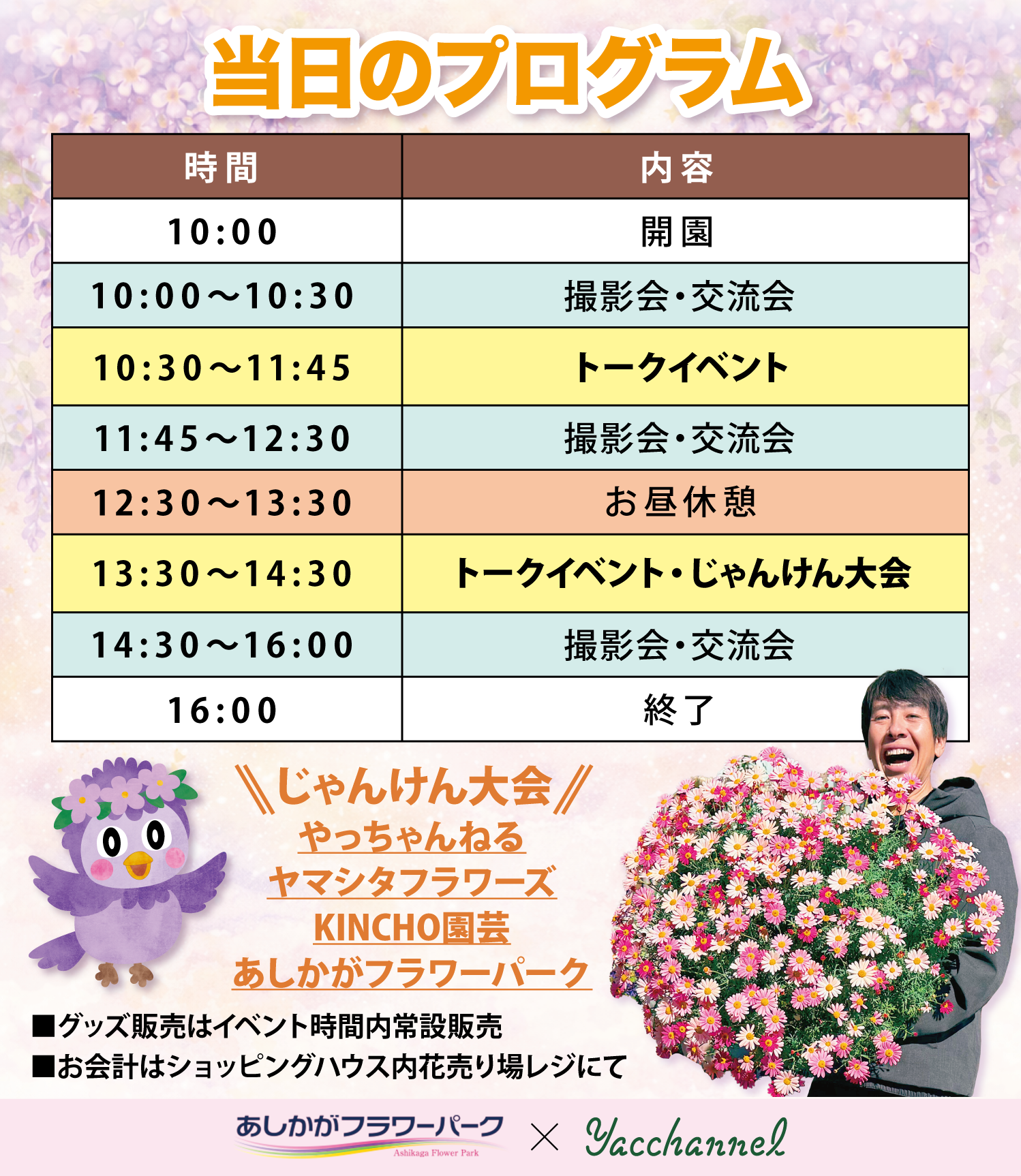 ☆各種販売会はイベント時間内常設販売。会計はショッピングハウス内花売り場レジにて☆