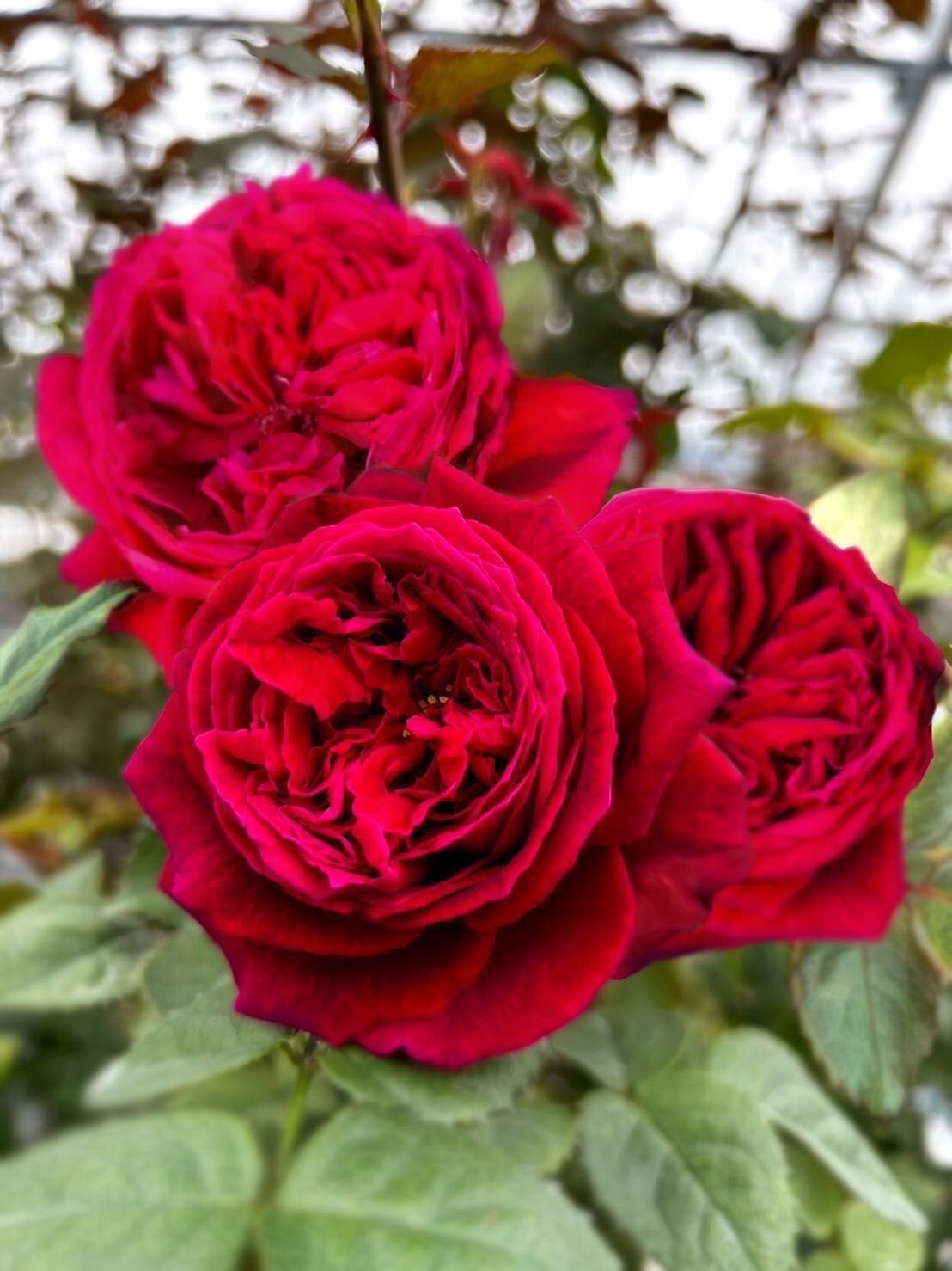 クリムゾンレッドのカップ咲きのお花からはダマスクモダンの強い香りが楽しめます。