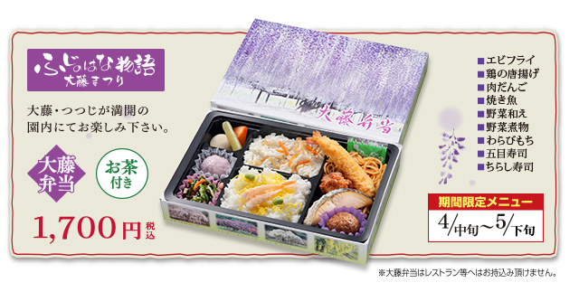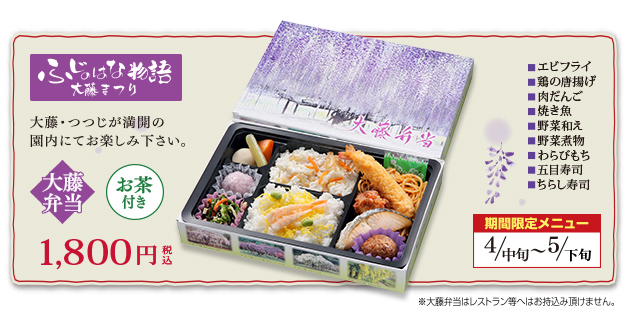 ● 4月中旬~5月中旬の 「ふじのはな物語」 期間と夜間営業の夕食のご予約はお受けできません。詳しくはお問い合わせ下さい。
