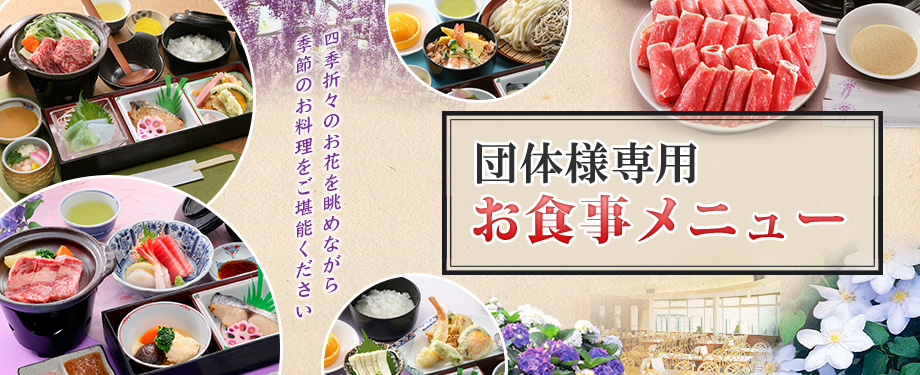 ● 団体様食事メニューのご予約は、5日前迄にご予約お願いいたします。直前のご予約に関しましてはお問い合わせ下さい。