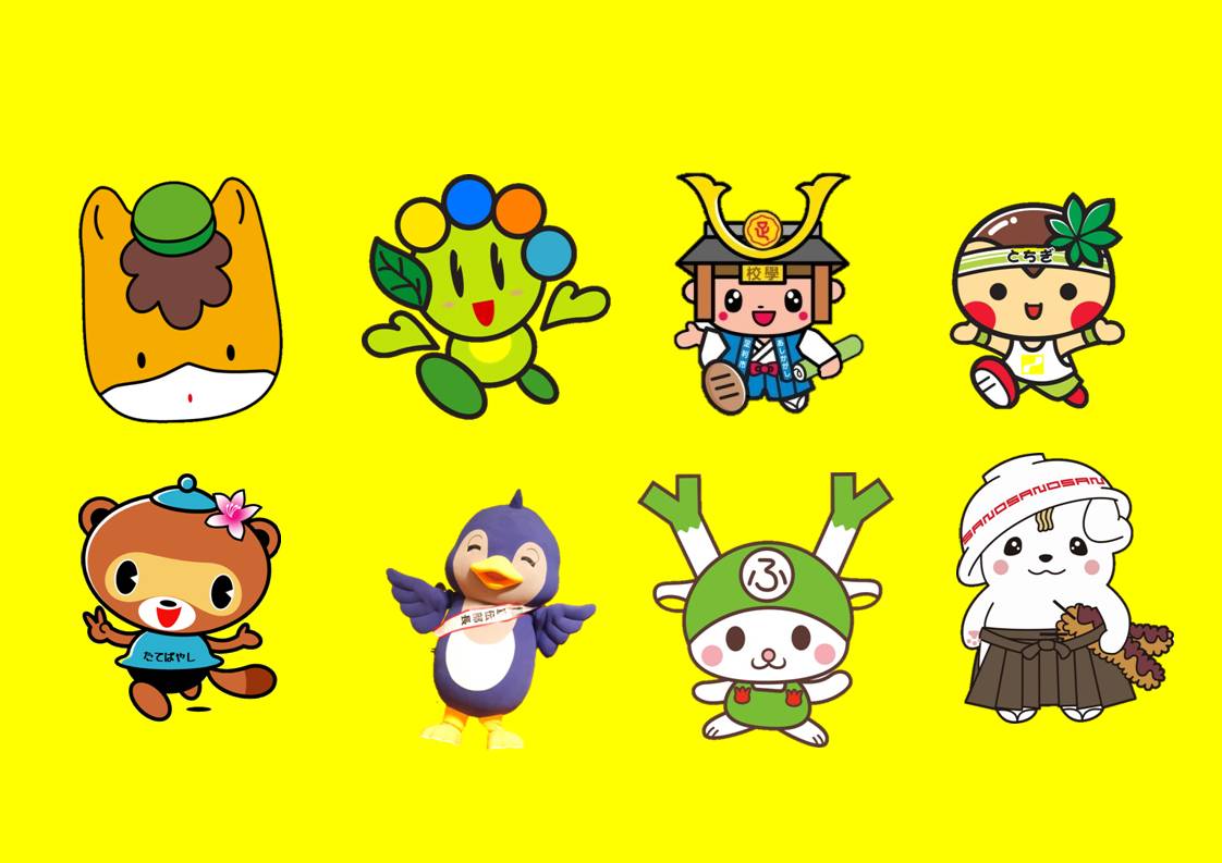 ぐんまちゃん、ふっかちゃん、とちまるくん、たかうじ君、おおたん、ルリちゃん、