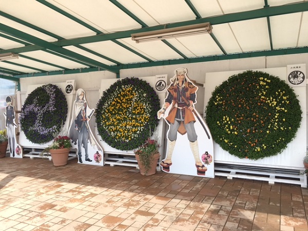 フォトスポットには、刀剣男士「山姥切国広」「堀川国広」「山伏国広」3人の紋をかたどったフラワーアートを展示。更に、刀剣男士の等身大パネルを設置いたします。