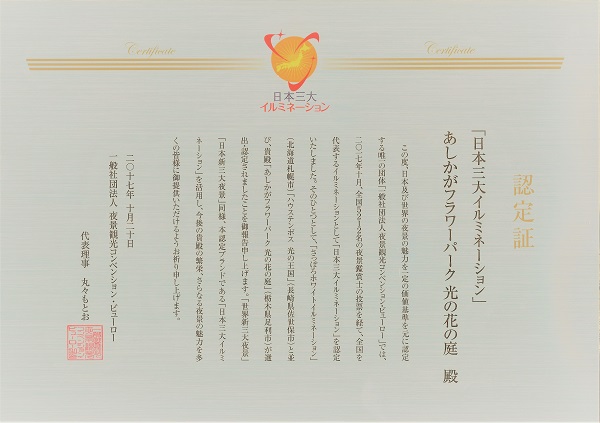 2017年12月09日(土)「日本三大イルミネーション」に認定!!