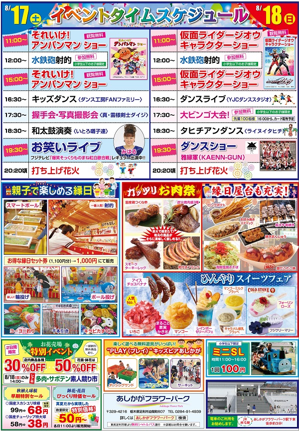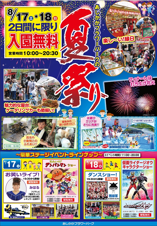 2019年08月01日(木)【2日間限定】8/17(土)、18(日)あしかがフラワーパークの夏まつり