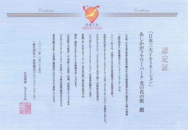 2022年03月30日(水)ランキング1位にて日本三大イルミネーション認定