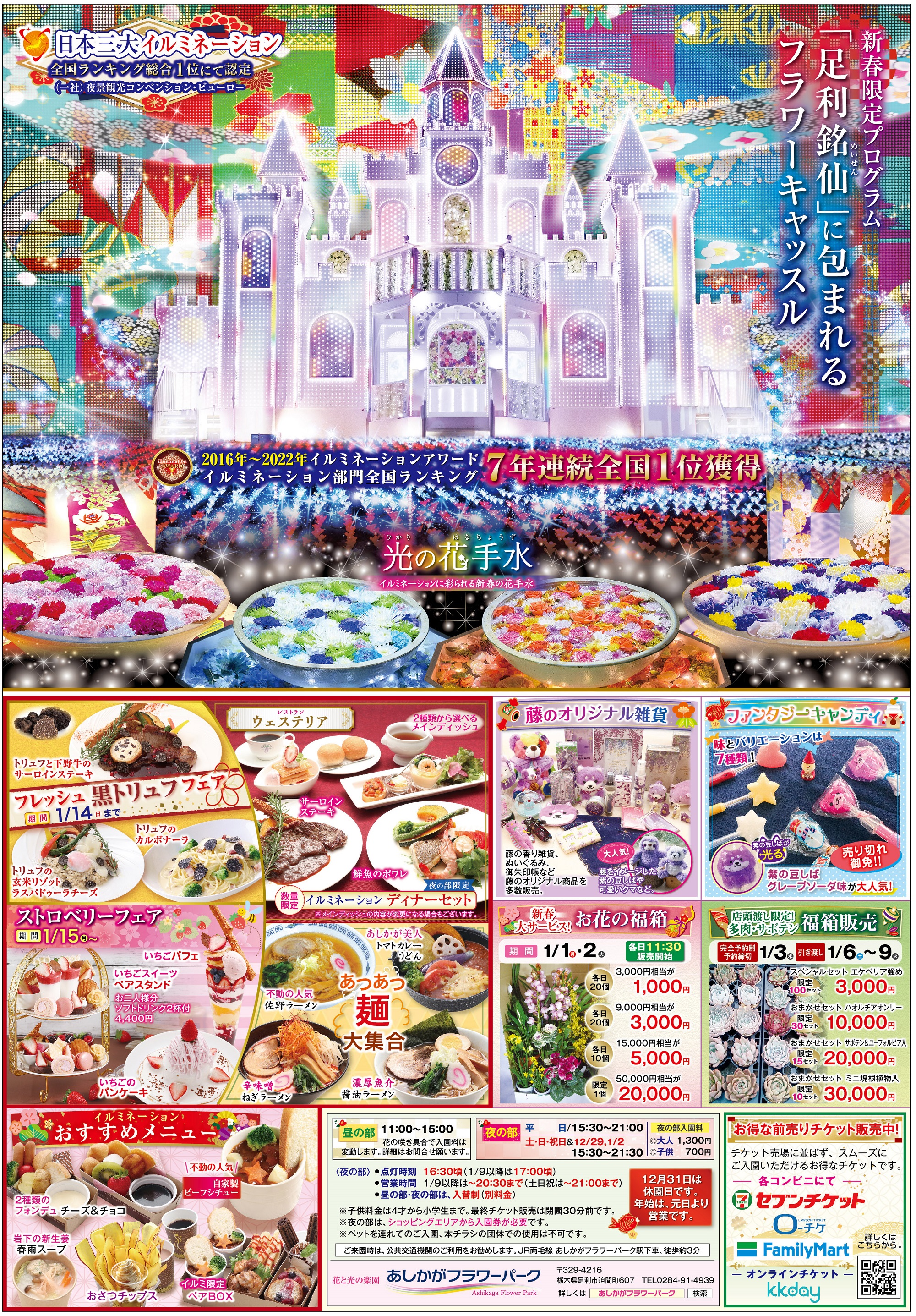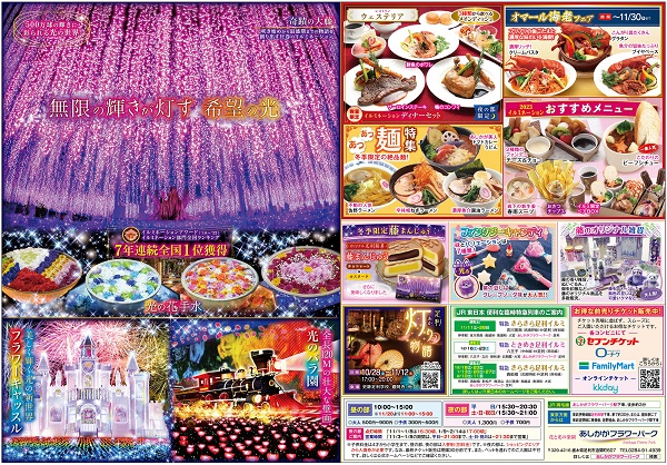 ※10/18(水)~2/14(水)の期間は、昼の部・夜の部入替制となります。 夜の部はショッピングエリアより有料となります。 昼の部は11:00開園となります。 光の花の庭 詳細 >> こちら 並ばずスムーズにご入園頂ける、お得な前売券 詳細 >> こちら 「光の花の庭」第五弾 (クリックで拡大します) 「光の花の庭」第四弾 (クリックで拡大します) 「光の花の庭」第三弾 (クリックで拡大します) 「光の花の庭」第二弾 (クリックで拡大します) 「光の花の庭」第一弾 (クリックで拡大します)