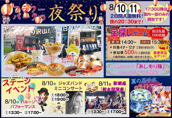 8月10日(土)、11日(日)の2日間限定にてフラワーパークの夜祭りを開催します!