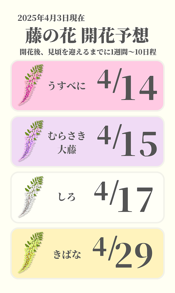 2025年04月03日(木)【随時更新】藤の開花予測!