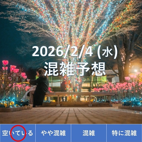 本日2/4(水)の夜の部イルミネーションは「空いている」と予想しております。