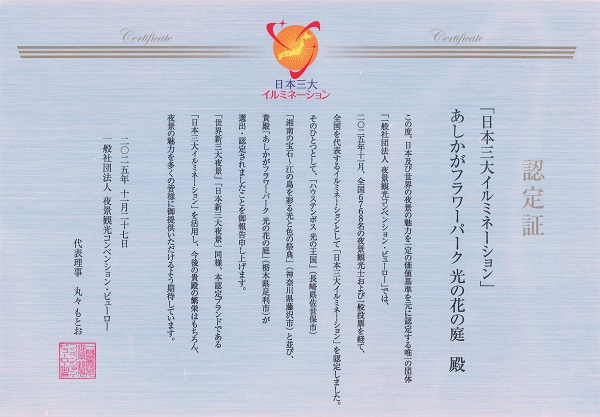 当園は3度目の日本三大イルミネーション認定を受賞いたしました。
