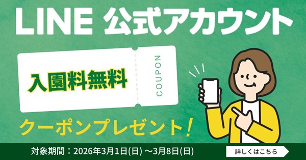 LINE友達登録キャンペーンも実施中!こちらも入園料「無料」クーポンを配信!!