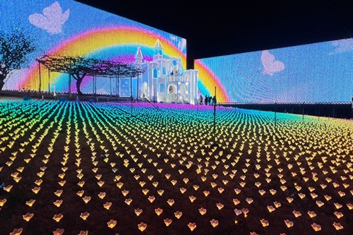 今期は「奇蹟の大藤」「フラワーキャッスル」「光のバラ園」が光と香りで楽しむ没入感のある体感型イルミネーションへ進化しました‼