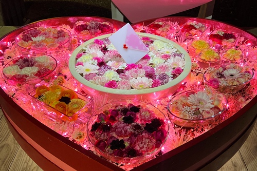 フラワーステージ付近にはバレンタインのフォトスポットが登場しました。