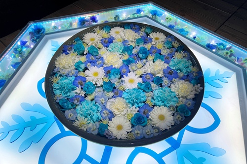 夜の部は『光の花手水』としてお楽しみいただけます。
