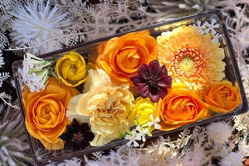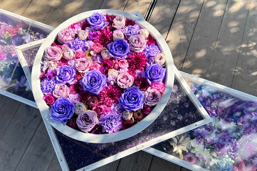 小部屋の中は花に囲まれ、ブルーローズ系の爽やかな香り漂う空間となっています。