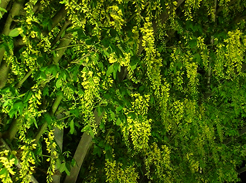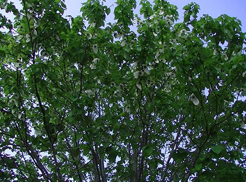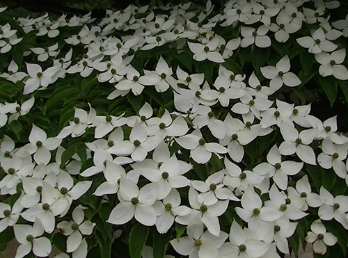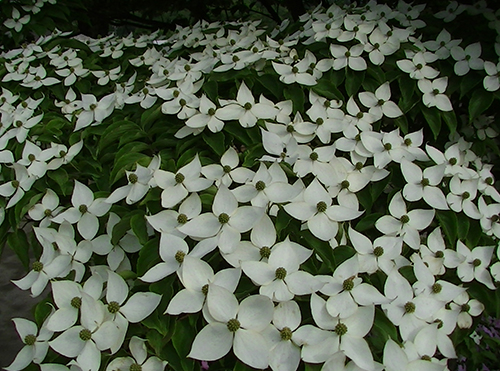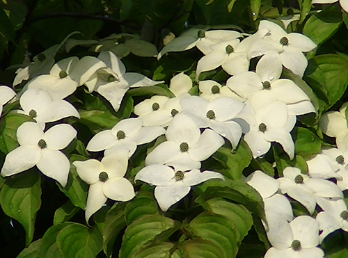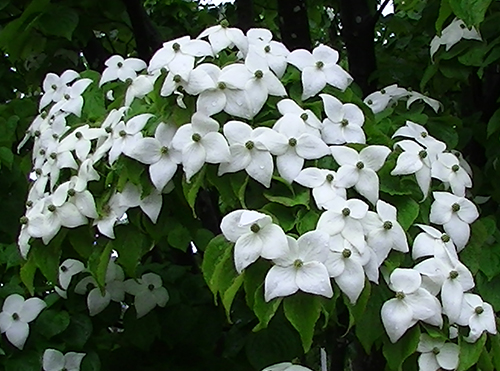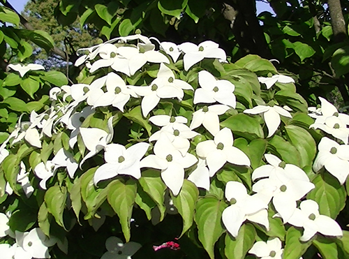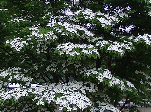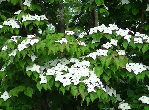 ミズキ科ミズキ属で白い花びらの様な部分を頭巾を破った法師に見立てて「山法師」と名付けられたそうです。秋に赤くなる果実は食用となり、樹形も良く紅葉も美しい為、シンボルツリーに適しております。