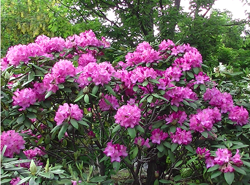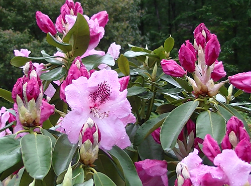 シャクナゲの森入口(北側)付近に咲き始めました。