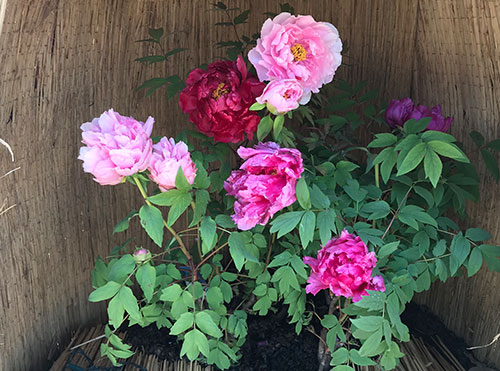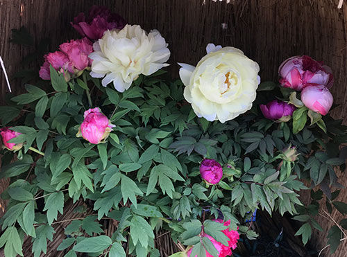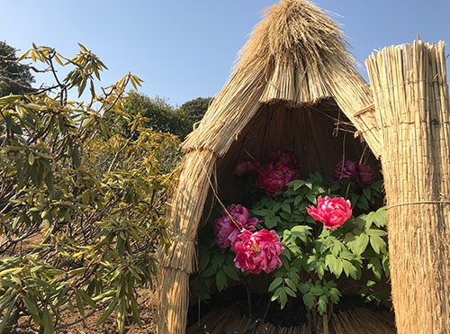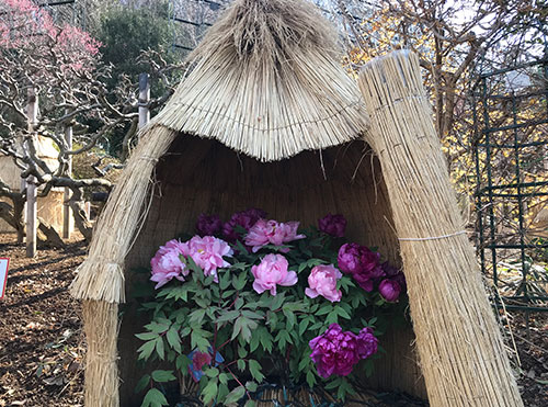 雪囲いされた冬咲き牡丹
