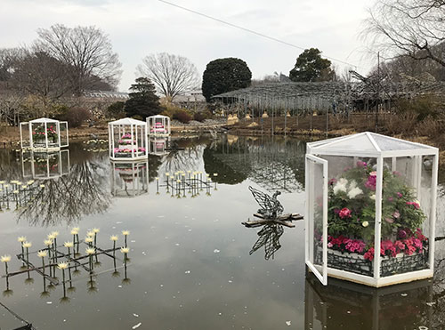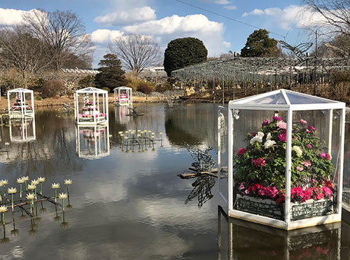 水上に浮かぶ冬咲き牡丹