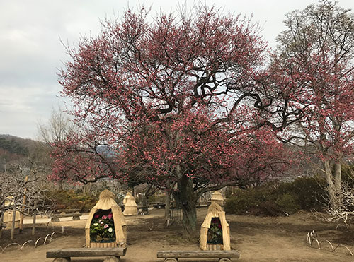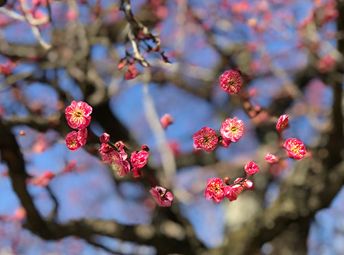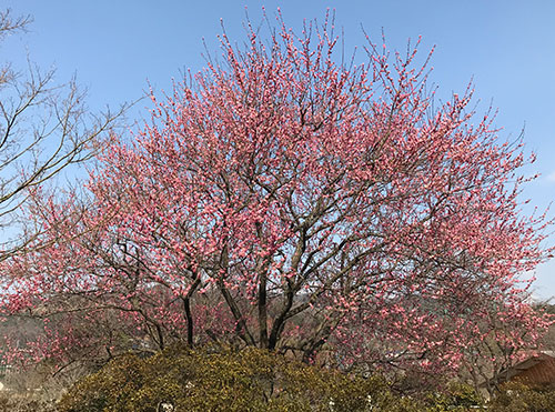 園内は梅や寒紅梅などが大変きれいに咲いております。