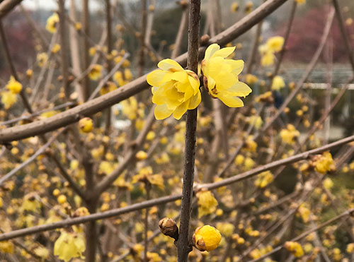 蝋梅が見頃を迎えました!!園内では甘い香りが漂います。