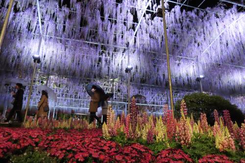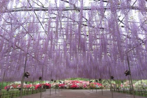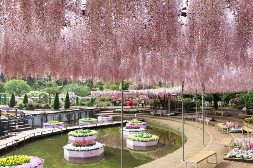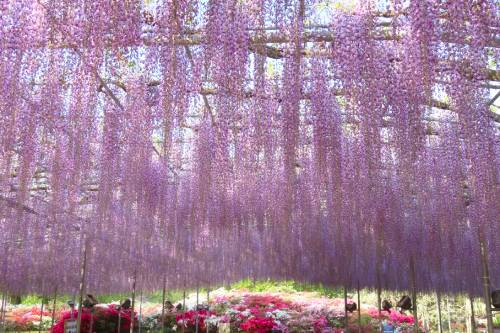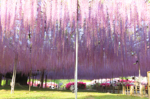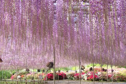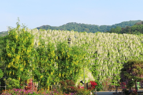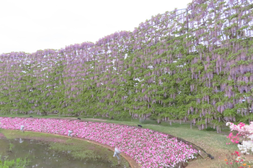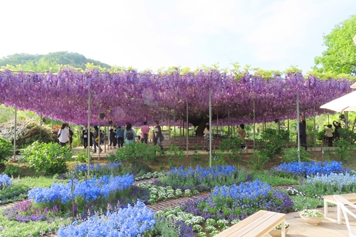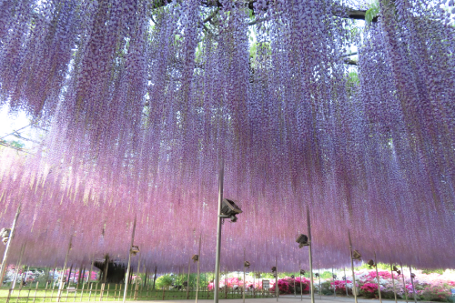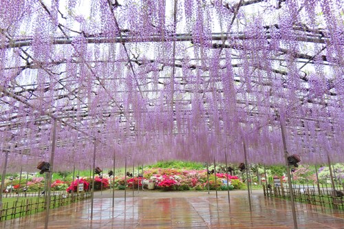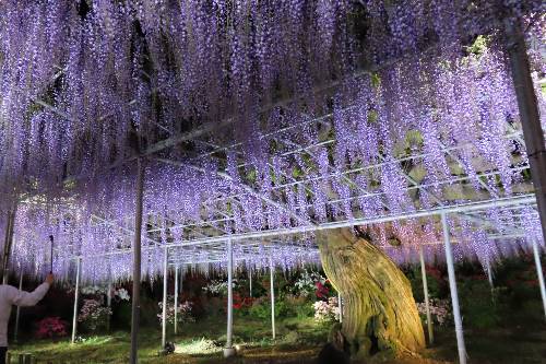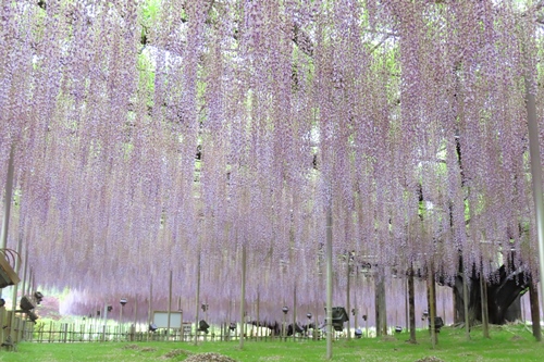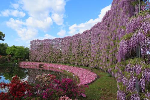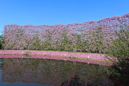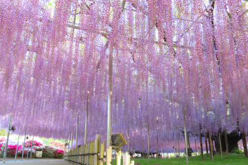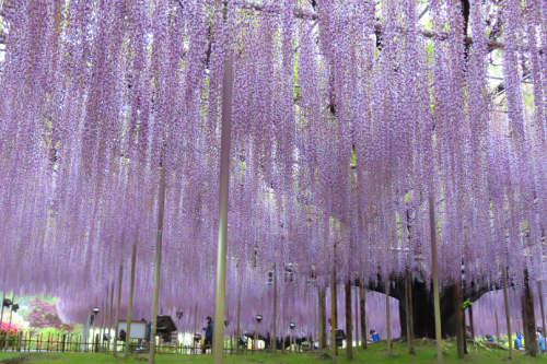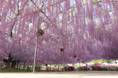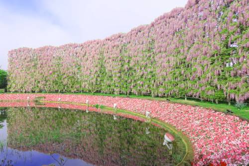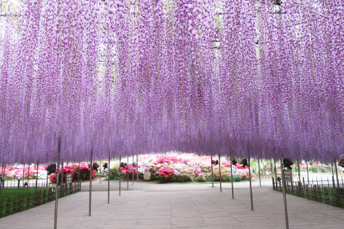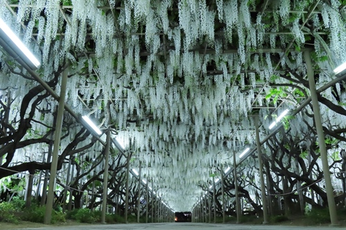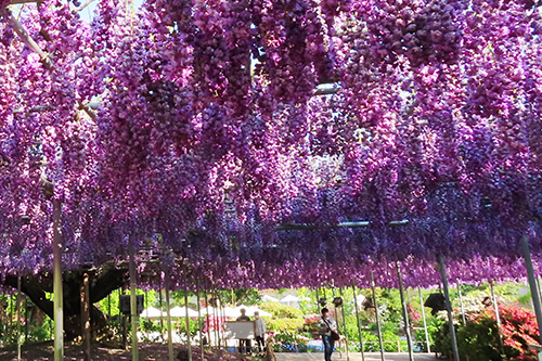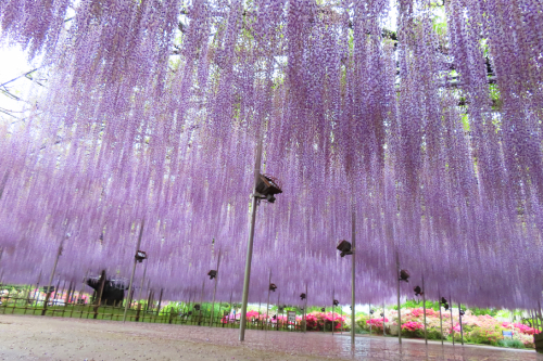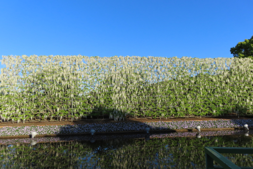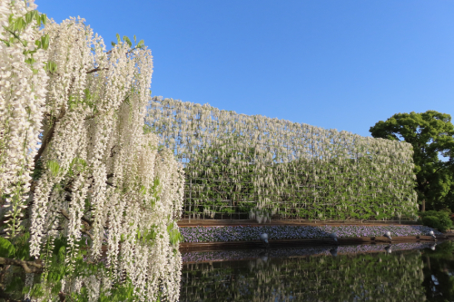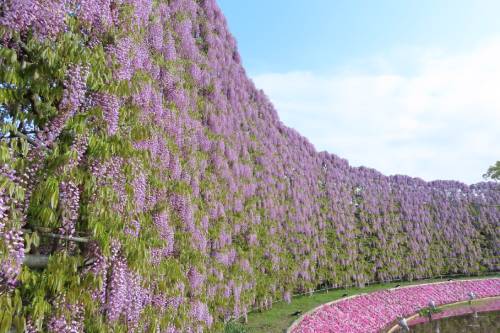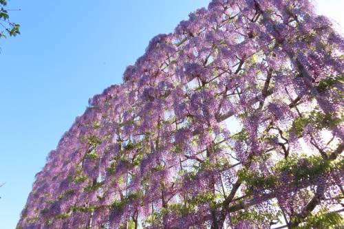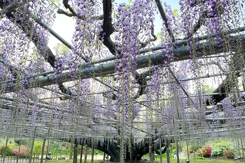 幅50m、高さ8.5mの迫力ある藤のスクリーンをご覧ください。