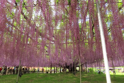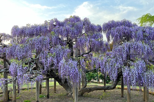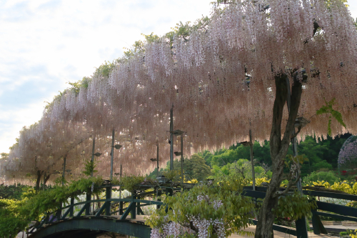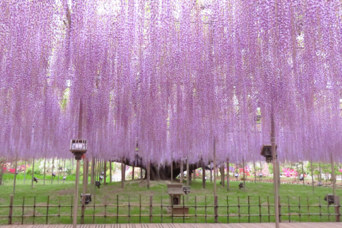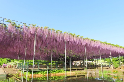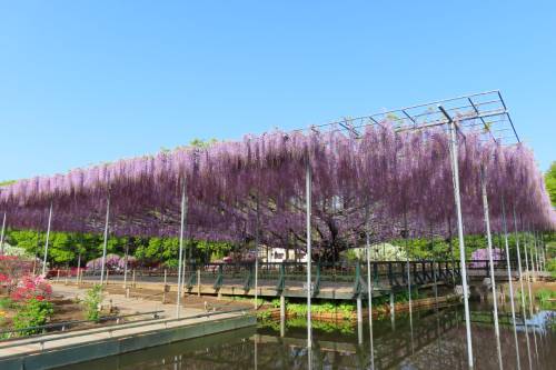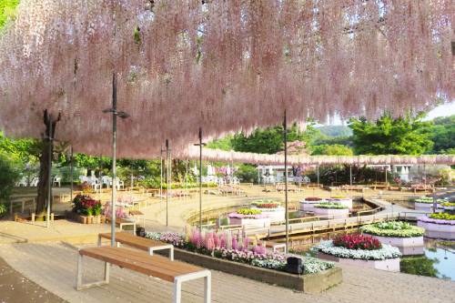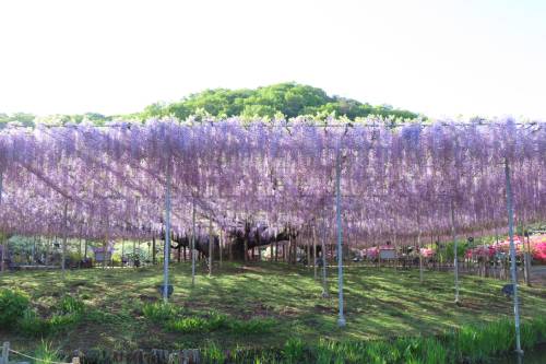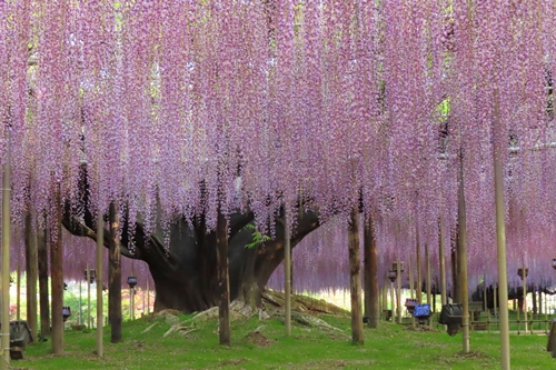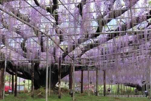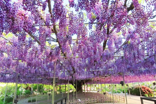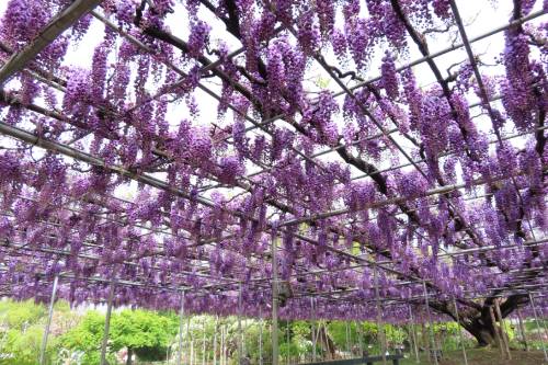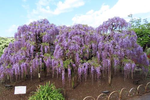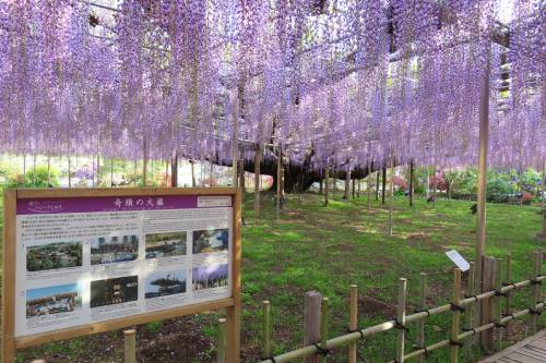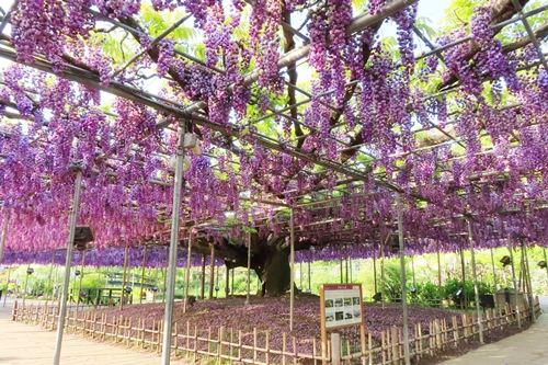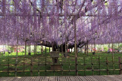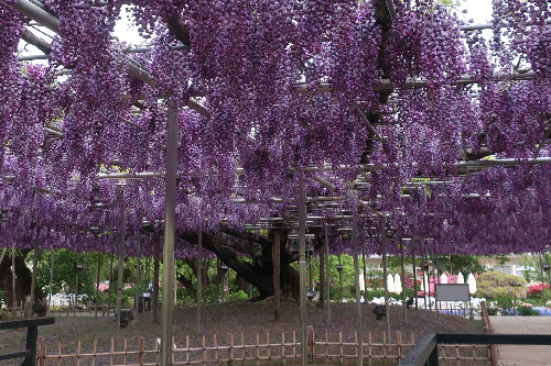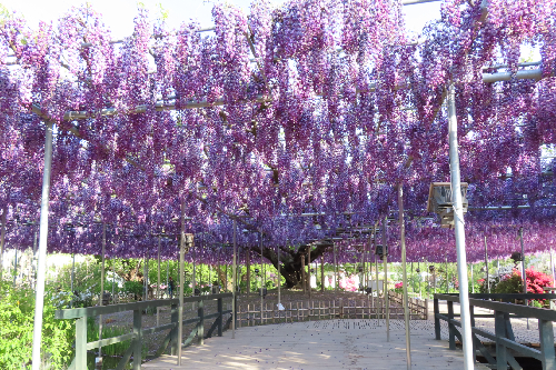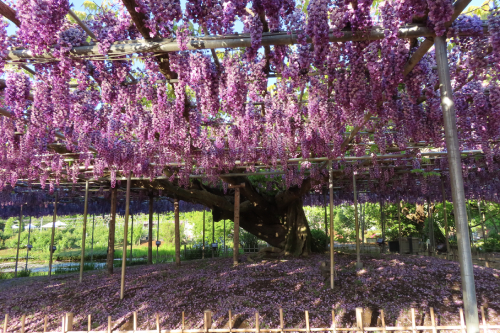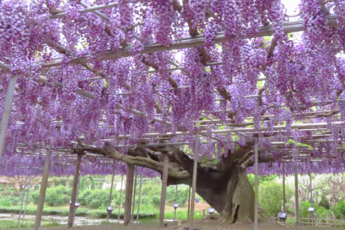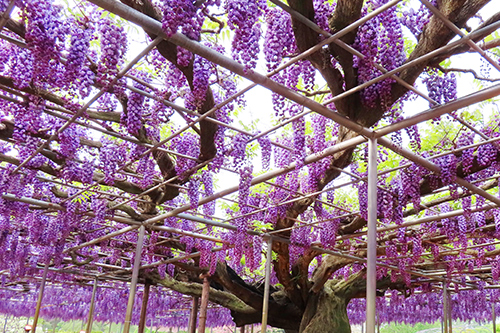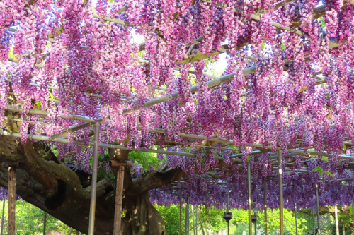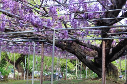 樹齢は160年におよび、1本の幹で1,000㎡の大藤棚です。