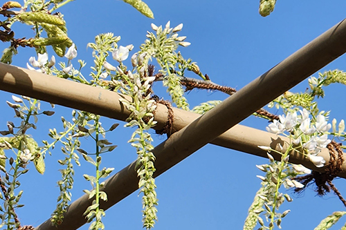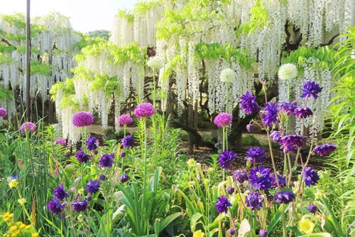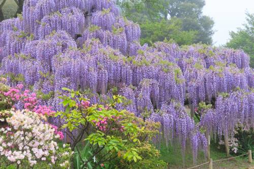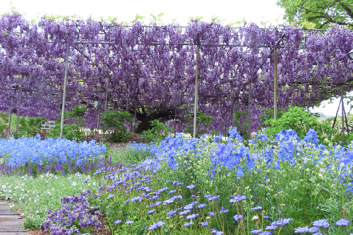 むらさき藤、白藤、きばな藤と3色の藤色が同時にお楽しみ頂けます。