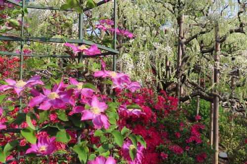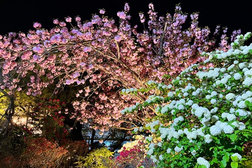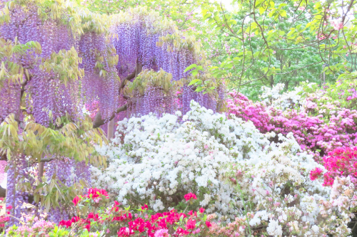 うすべに藤、むらさき藤、白藤と3色の藤色が同時にお楽しみ頂けます。