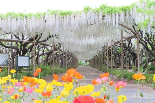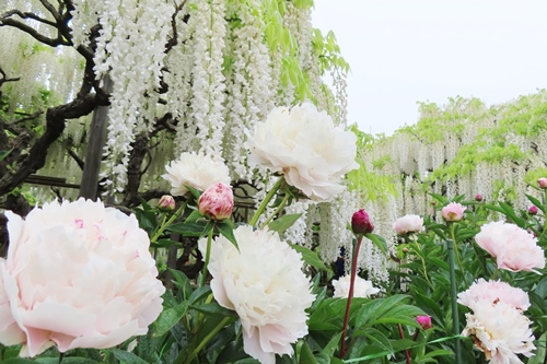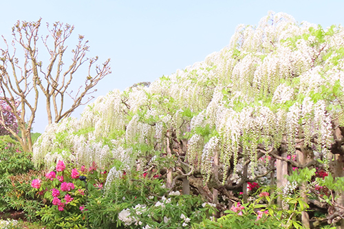 大藤、白藤、きばな藤と3色の藤色が同時にお楽しみ頂けます。