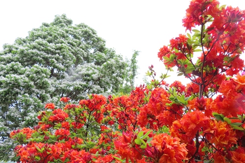 しゃくなげとヒトツバタゴ(なんじゃもんじゃ)