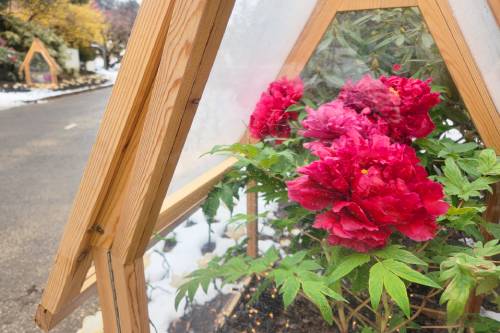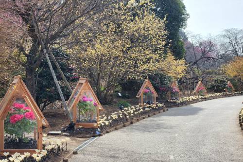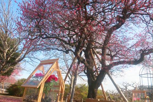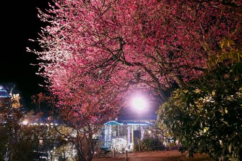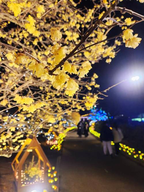 園内では冬咲きボタンやロウバイ、寒紅梅のライトアップがご覧いただけます!