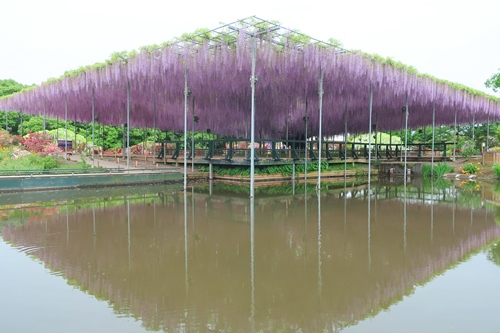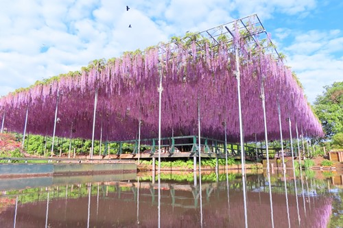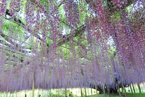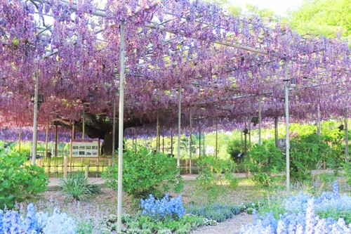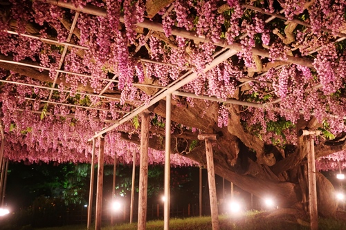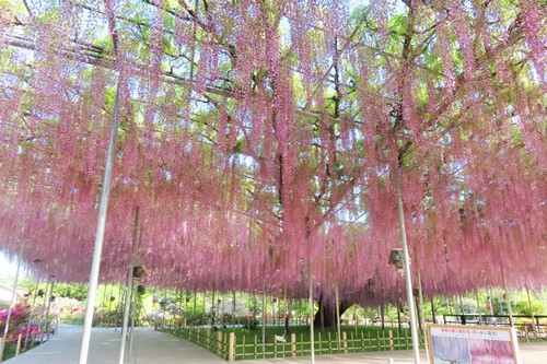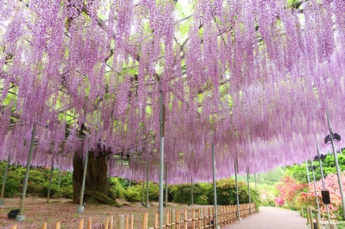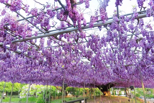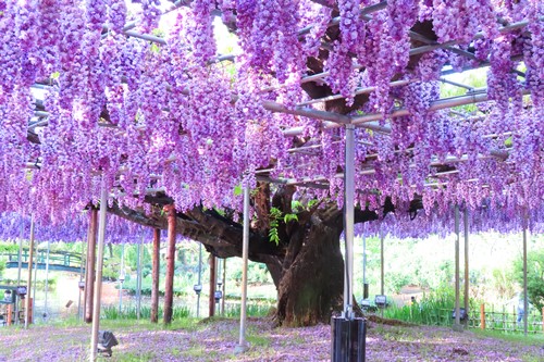 樹齢は160年を超え、1本の幹で1,000㎡の大藤棚です。