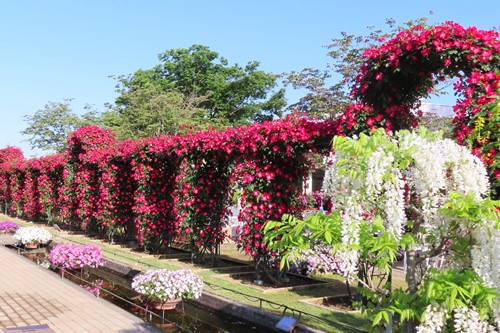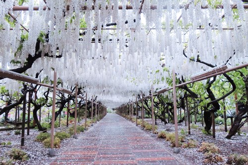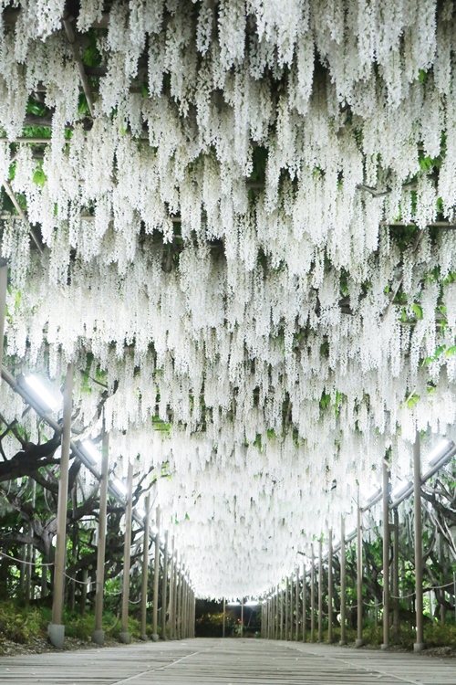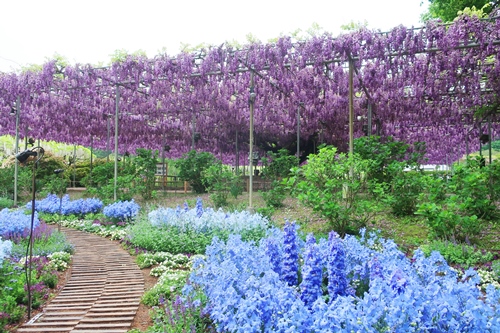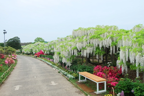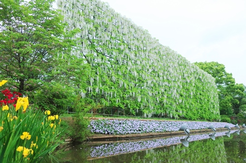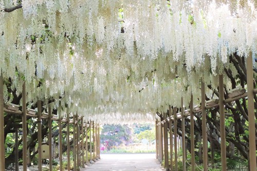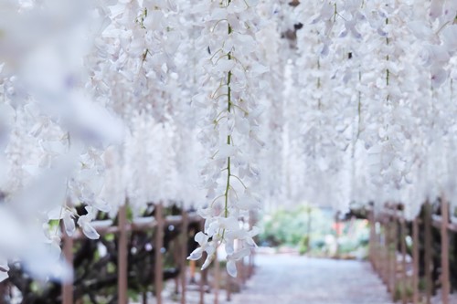 大藤、白藤、きばな藤と3色の藤色が同時にお楽しみ頂けます。