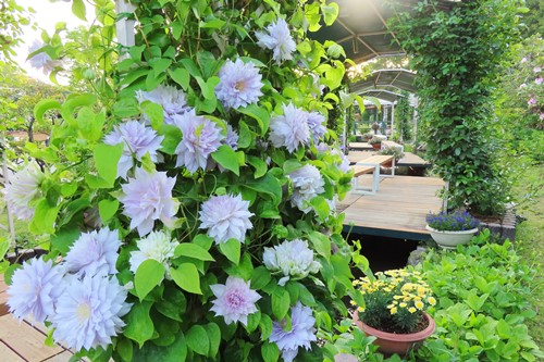 満開を迎えたバラ、クレマチスが織りなすカラフルな世界。