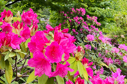シャクナゲ、ヤマボウシ、四季彩のステージをお楽しみください。