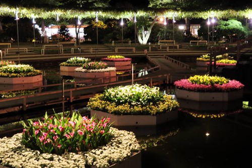 昼間とは全く景色が変わる、ライトアップされた幻想的な世界。