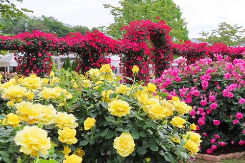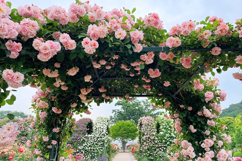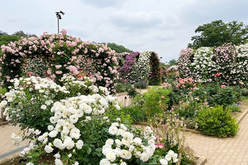 500品種、2,500株のバラが華やかに園内を彩ります。