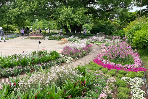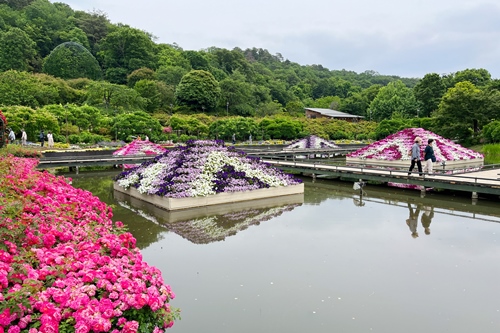 バラ、シャクナゲ、クレマチスと共に彩り鮮やかな園内となっています。