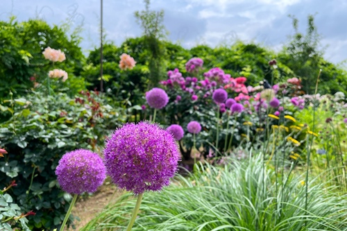 バラ、シャクナゲ、シャクヤク、クレマチスと共に園内をお楽しみください。