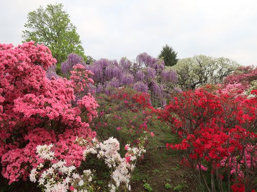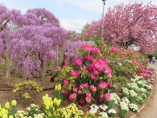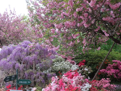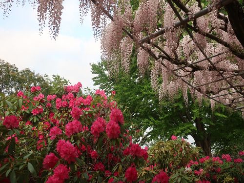 八重桜と紫藤とシャクナゲ