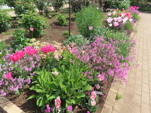 ローズガーデンの花壇に咲いているお花たち