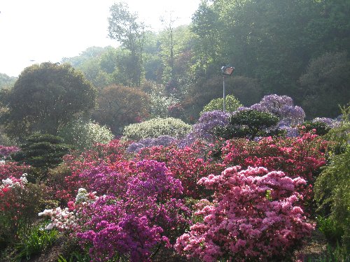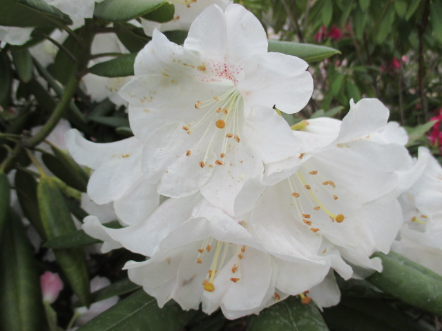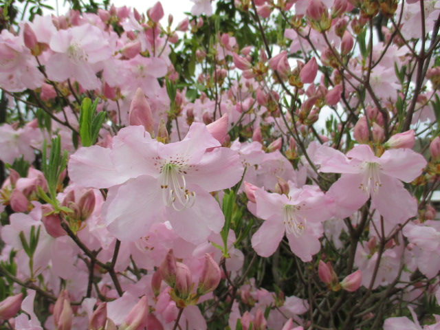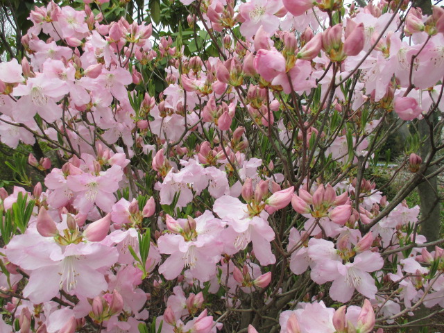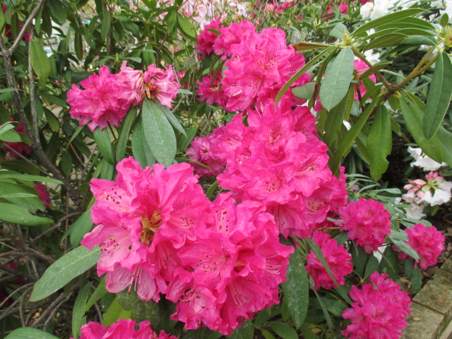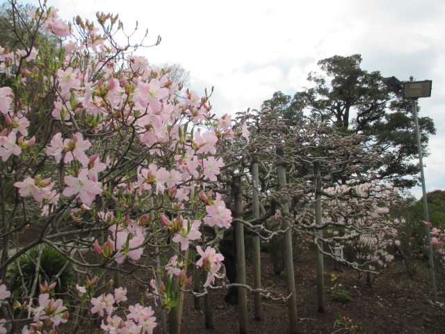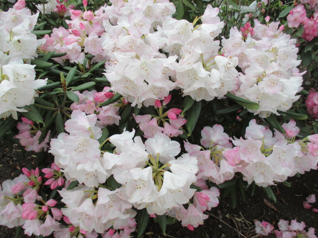シャクナゲたちは早咲き種から遅咲き種まであり、品種も豊富。